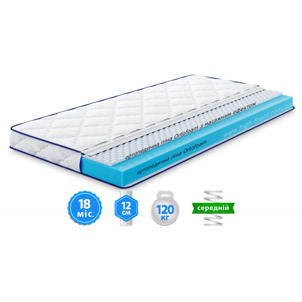 жорсткості. В основі матрацу піна ortofoam і піна з масажним ефектом яка славиться своєю винятковою довговічністю та стійкістю до