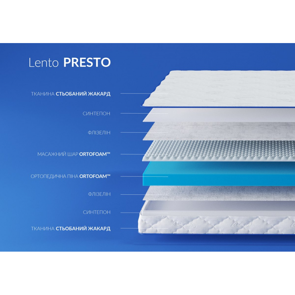 Матрац Ленто Престо (Lento Presto) - це безпружинний двосторонній матрац із різним ступенем